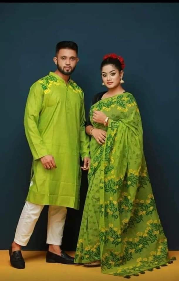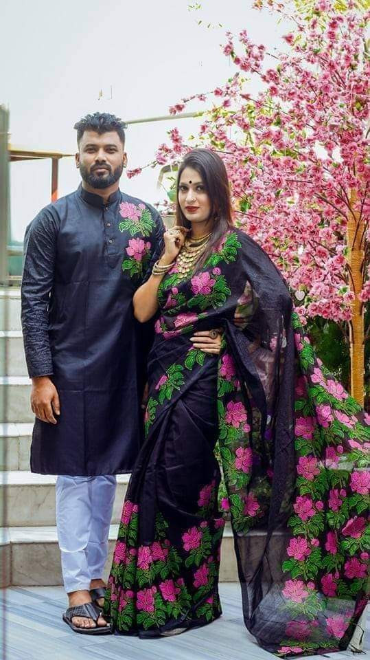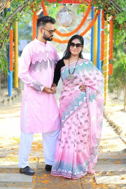 Stylish New Collection Saree & Panjabi koti Combo Couple Dress